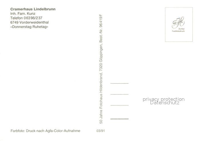 72947163 Vorderweidenthal Cramerhaus Lindelbrunn postalisch nicht gelaufen Erhaltung siehe scans [LiesaD40] KatCode: 11110007337079
