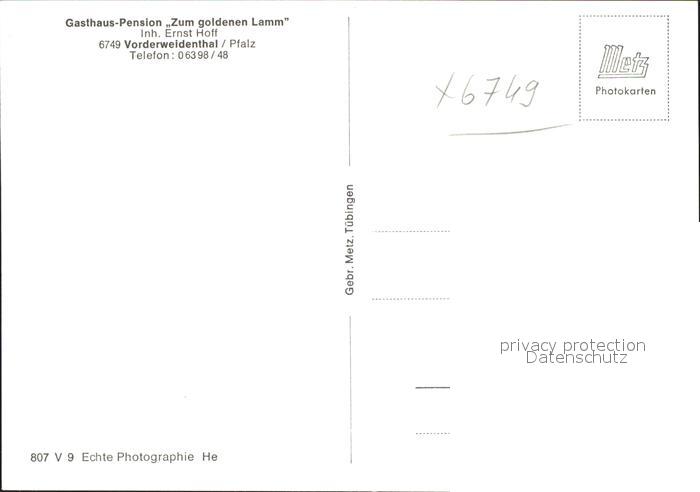 41793316 Vorderweidenthal Gasthaus Pension zum goldenen Lamm postalisch nicht gelaufen Erhaltung siehe scans KatCode: 11110007337079