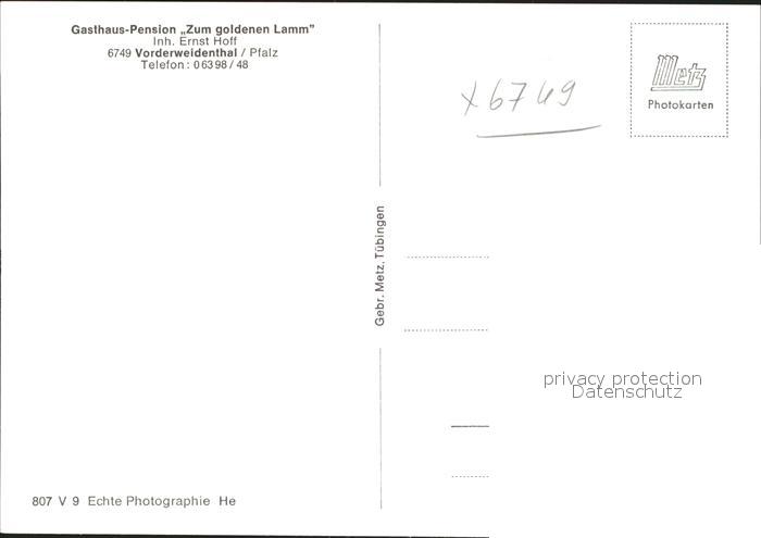 41793317 Vorderweidenthal Gasthaus Pension zum goldenen Lamm postalisch nicht gelaufen Erhaltung siehe scans KatCode: 11110007337079