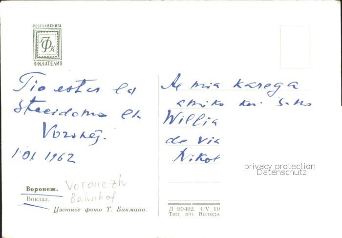 Voronezh Bahnhof postalisch nicht gelaufen Erhaltung siehe scans