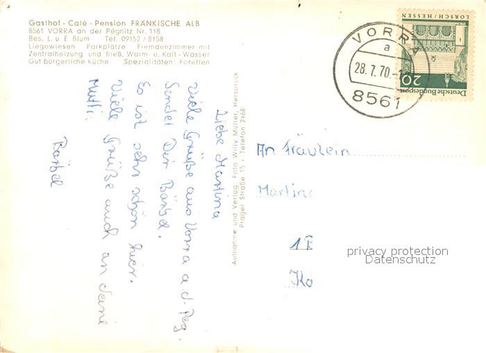 73643488 alte Postkarte Vorra Pegnitz Gasthof Fraenkische Alb Gastraeume Panorama postalisch gelaufen Erhaltung siehe scans [WerneD78] KatCode: 11110009574161