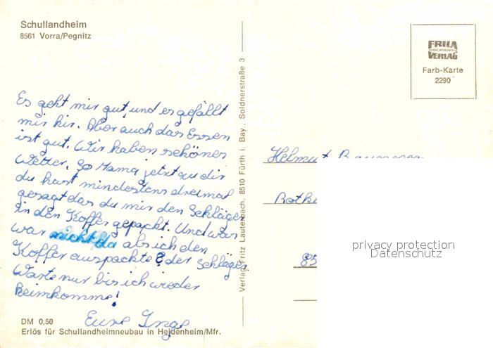 72723982 Vorra Pegnitz Schullandheim postalisch nicht gelaufen Erhaltung siehe scans [LiesaD40] KatCode: 11110009574161