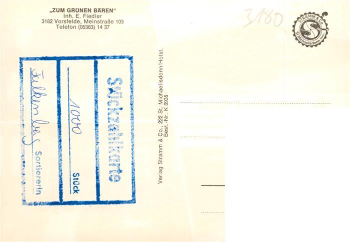 73897176 Vorsfelde Gasthaus Zum gruenen Baeren Kegelbahn Bar Gastraeume postalisch nicht gelaufen Erhaltung siehe scans [WerneD78] KatCode: 11110003103000