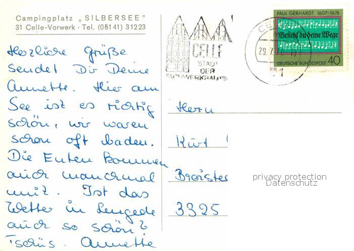 72673210 alte Postkarte Vorwerk Celle Campingplatz Silbersee Details postalisch gelaufen Erhaltung siehe scans [WerneD78] KatCode: 11110003351006