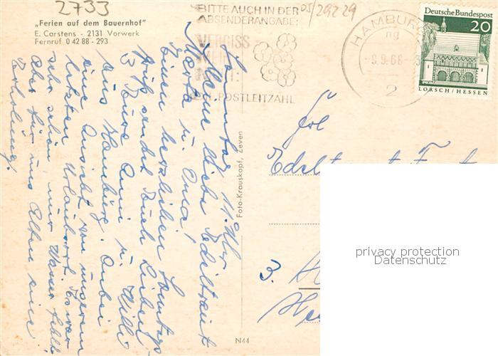 73864937 alte Postkarte Vorwerk Tarmstedt Ferien auf dem Bauernhof Cartens Details postalisch gelaufen Erhaltung siehe scans [WerneD78] KatCode: 11110003357052