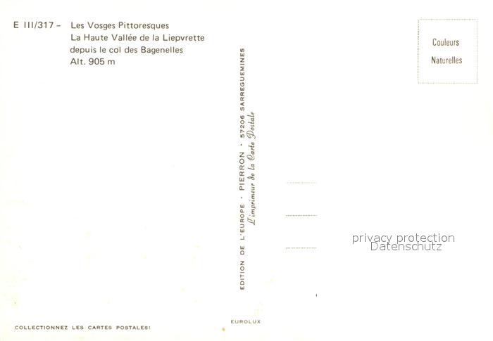 13031059 Vosges Vogesen Region Haute Vallee de la Liepvrette depuis le col des Bagenelles postalisch nicht gelaufen Erhaltung siehe scans [WerneD78] KatCode: 11170088388196