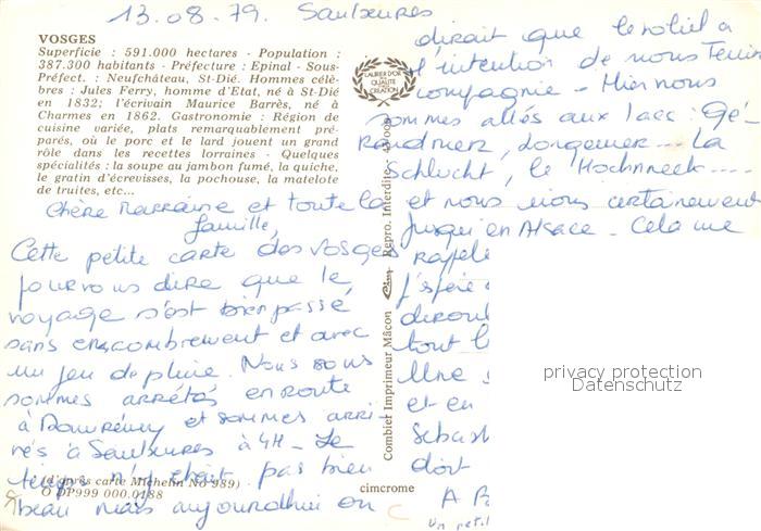 13326335 Vosges Vogesen Region Remiremont Ballon d’Alsace Contrexeville Ventron Gerardmer Bussang Plombieres Epinal St Die Vittel postalisch nicht gelaufen Erhaltung siehe scans [WerneD78] KatCode: 11170088388196