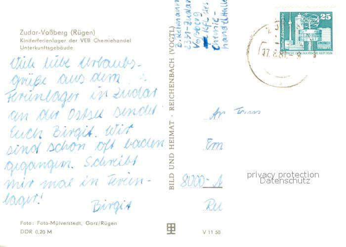 73749767 alte Postkarte Vossberg Zudar Kinderferienlager der VEB Chemiehandel Unterkunftsgebaeude postalisch gelaufen Erhaltung siehe scans [WerneD78] KatCode: 11110013061011