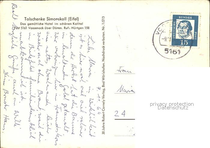 72477746 alte Postkarte Vossenack Talschenke Simonskall postalisch gelaufen Erhaltung siehe scans KatCode: 11110005358016