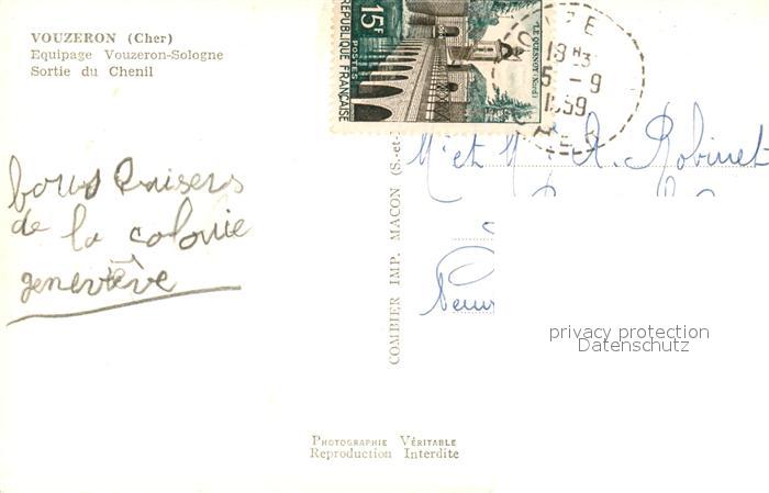 13580530 carte postale Vouzeron Equipage Vouzeron Sologne Sortie du Chenil postalisch gelaufen Erhaltung siehe scans [KathaD81] KatCode: 11170018318290