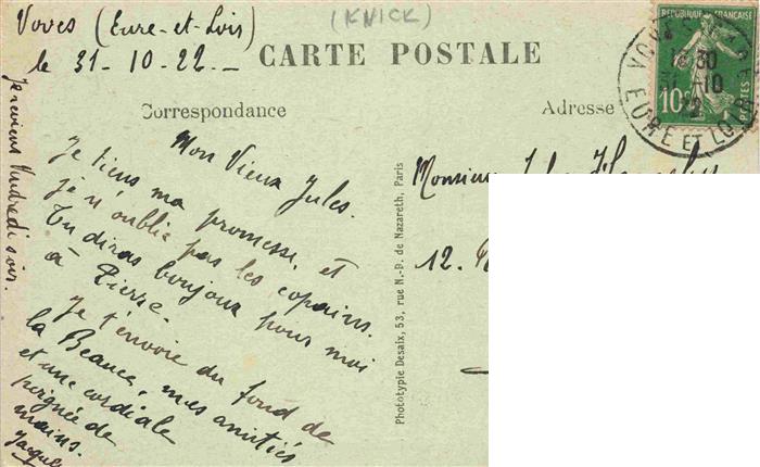 13975067 Voves 28 Eure-et-Loir Boulevard de la Gare postalisch gelaufen Erhaltung siehe scans [FriedD77] carte postale Frie Katcode 11170028128422