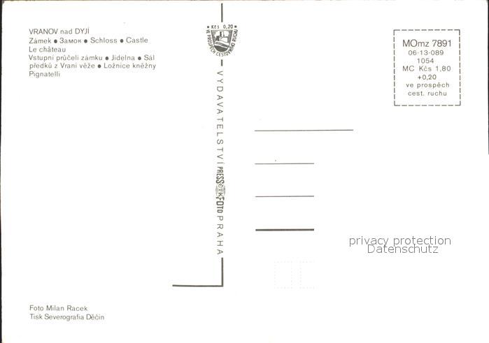Vranov nad Dyji Zamek Vstupni pruceli zamku Jidelna Sal predku Vrani veze Loznice knezny Pignatelli postalisch nicht gelaufen Erhaltung siehe scans