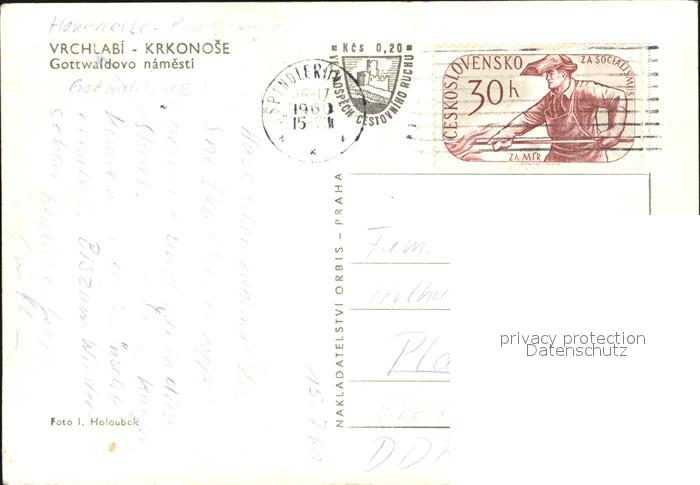 12446044 old postcard Vrchlabi Gottwaldovo namesti postalisch gelaufen Erhaltung siehe scans KatCode: 11520