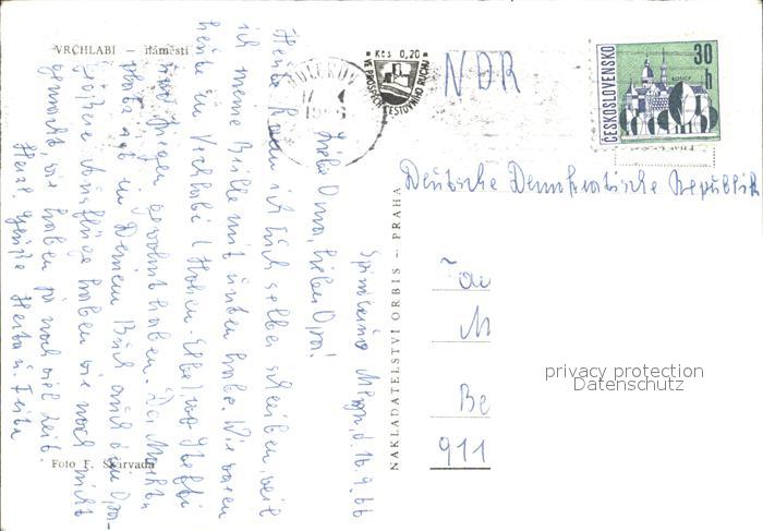 old postcard Vrchlabi Namesti Marktplatz postalisch gelaufen Erhaltung siehe scans