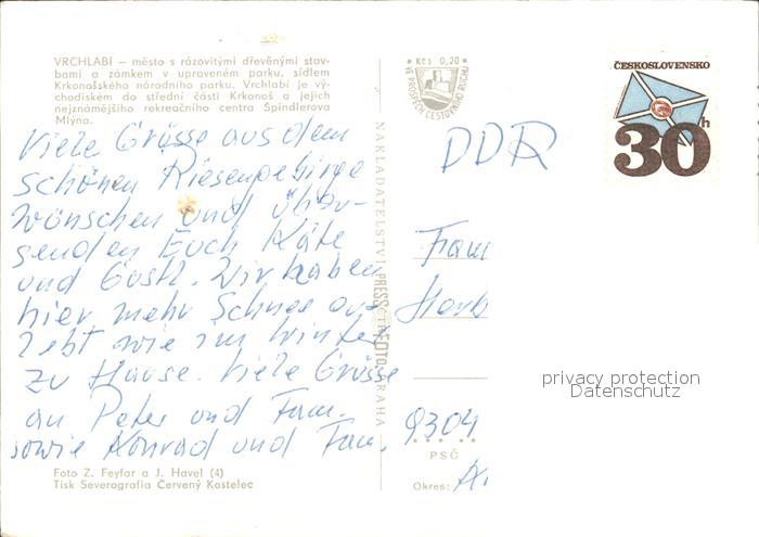 Vrchlabi Schloss Kirche Strassenpartie Park Spindlerova Mlyna postalisch nicht gelaufen Erhaltung siehe scans
