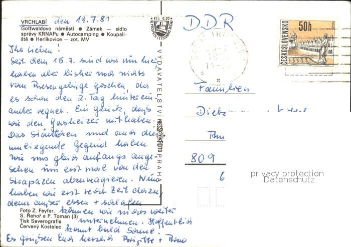 old postcard Vrchlabi Strand Campingplatz postalisch gelaufen Erhaltung siehe scans