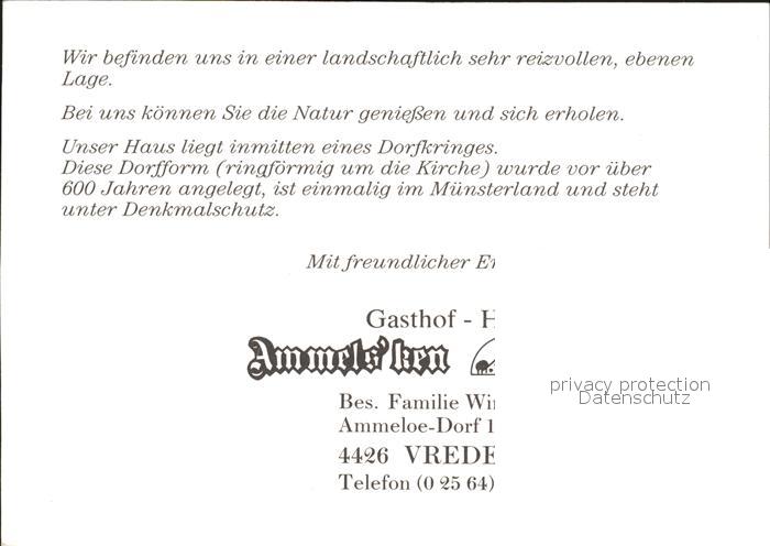 72276685 Vreden Ammels´ken Kring postalisch nicht gelaufen Werbekarte (keine Postkarte) Erhaltung siehe scans KatCode: 11110005554068