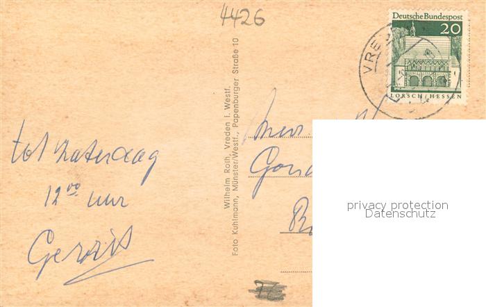 73704318 alte Postkarte Vreden Freibad Gruenanlage Planschbecken Bassin postalisch gelaufen Erhaltung siehe scans [LiesaD40] KatCode: 11110005554068