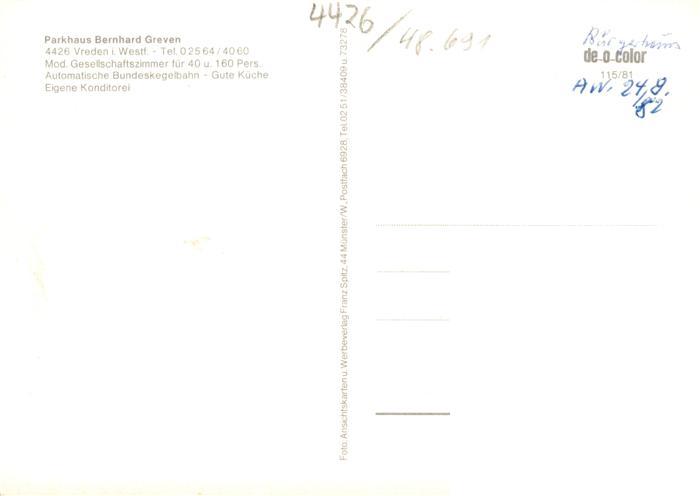 73894353 Vreden Parkhaus Bernhard Greven Gastraeume Gartenterrasse Teich postalisch nicht gelaufen Erhaltung siehe scans [WerneD78] KatCode: 11110005554068