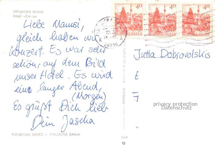 74038302 old postcard Vrnjacka Banja Raska Serbija Hotel Slavija postalisch gelaufen Erhaltung siehe scans [WerneD78] KatCode: 11480