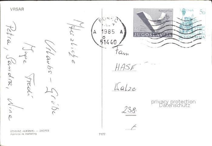 old postcard Vrsar Istrien Fliegeraufnahme postalisch gelaufen Erhaltung siehe scans