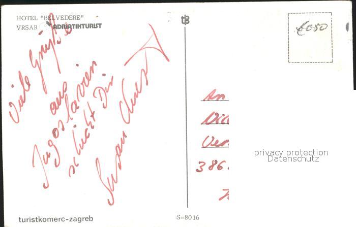 old postcard Vrsar Istrien Hotel Belvedere Fliegeraufnahme postalisch gelaufen Erhaltung siehe scans