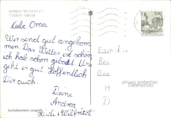 old postcard Vrsar Istrien Hotels Funtana Anita Fliegeraufnahme postalisch gelaufen Erhaltung siehe scans