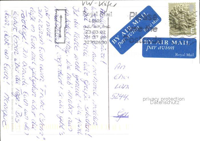 alte Postkarte VW Kaefer Kind postalisch gelaufen Erhaltung siehe scans