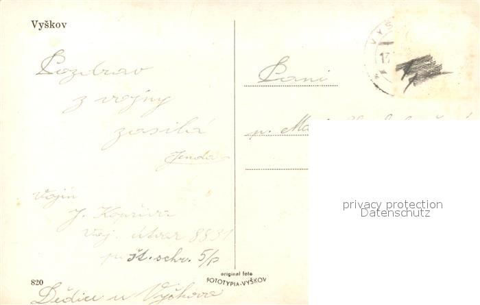old postcard Vyskov postalisch gelaufen Erhaltung siehe scans [LiesaD40]