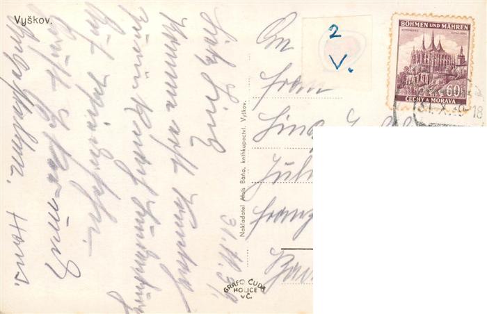 73959748 old postcard Vyskov Wischau CZ Ansicht mit Kirche postalisch gelaufen Erhaltung siehe scans [FriedD77] KatCode: 11520