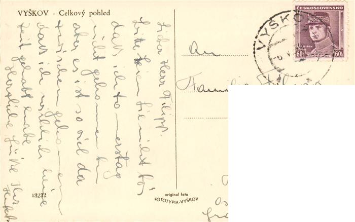 73959747 old postcard Vyskov Wischau CZ Celkovy pohled Blick ueber die Felder zur Stadt postalisch gelaufen Erhaltung siehe scans [FriedD77] KatCode: 11520