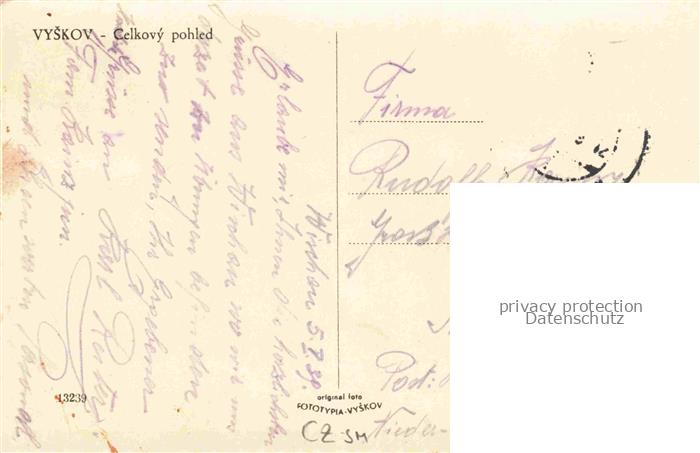 74034018 old postcard Vyskov Wischau Nachod CZ Panorama Kirchen postalisch gelaufen Erhaltung siehe scans [WerneD78] KatCode: 11520