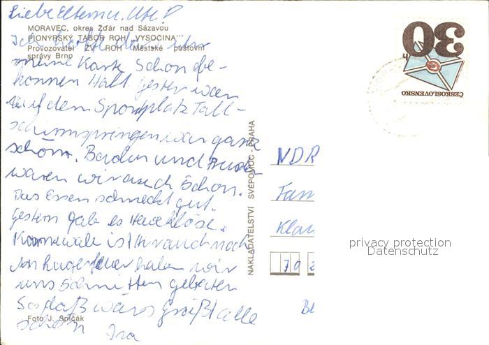old postcard vysociny Moravec Strand Campingplatz postalisch gelaufen Erhaltung siehe scans