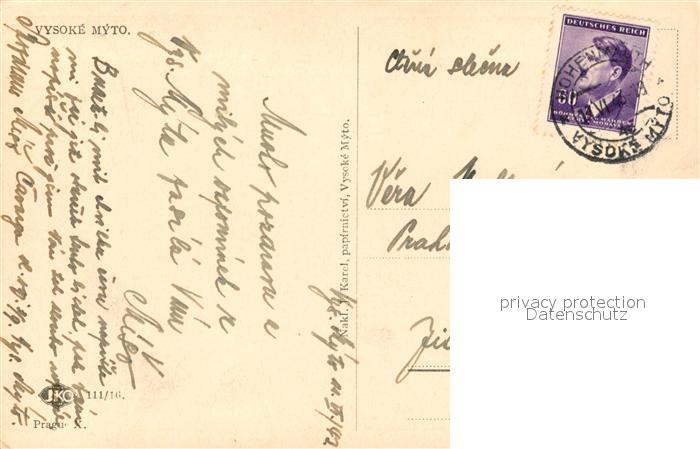 old postcard Vysoke Myto postalisch gelaufen Erhaltung siehe scans [LiesaD40]