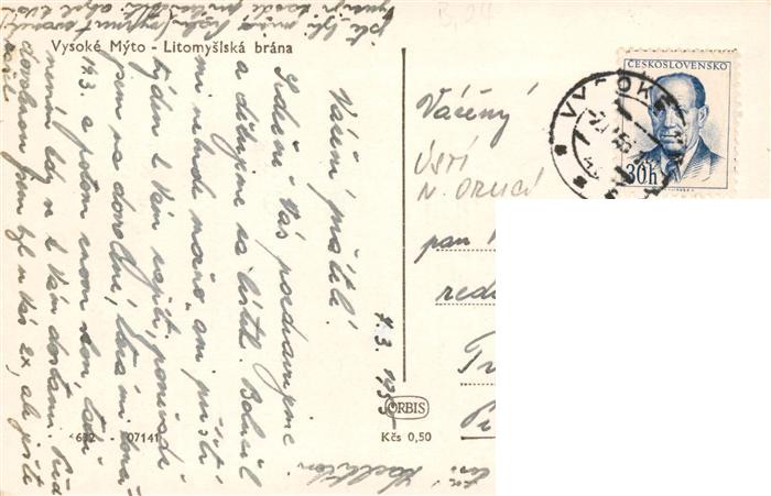 73959617 old postcard Vysoke Myto Hohenmauth CZ Litomyslska brana Stadttor postalisch gelaufen Erhaltung siehe scans [FriedD77] KatCode: 11520