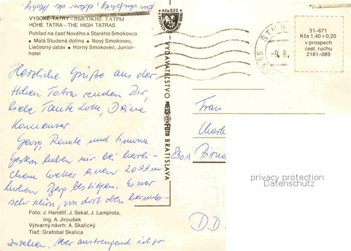 old postcard Vysoke Tatry postalisch gelaufen Erhaltung siehe scans [LiesaD40]