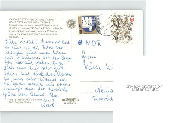 old postcard Vysoke Tatry postalisch gelaufen Erhaltung siehe scans