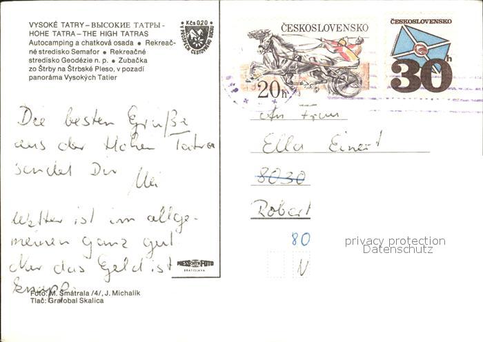 old postcard Vysoke Tatry Autocamping Tatranska Strba postalisch gelaufen Erhaltung siehe scans