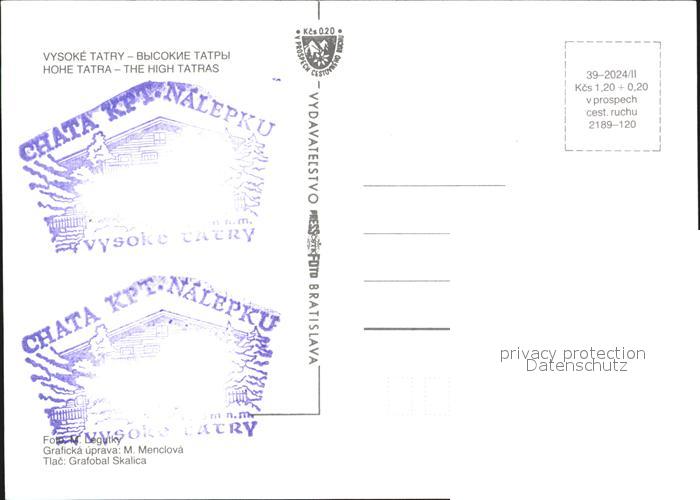 Vysoke Tatry Chata KPT. Nalepku postalisch nicht gelaufen Erhaltung siehe scans