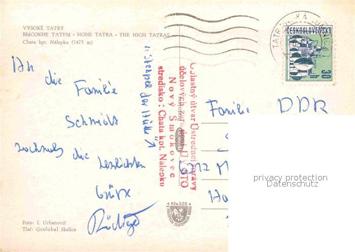 old postcard Vysoke Tatry Chata kpt Nalepku Berghuette Hohe Tatra postalisch gelaufen Erhaltung siehe scans [FriedD77]