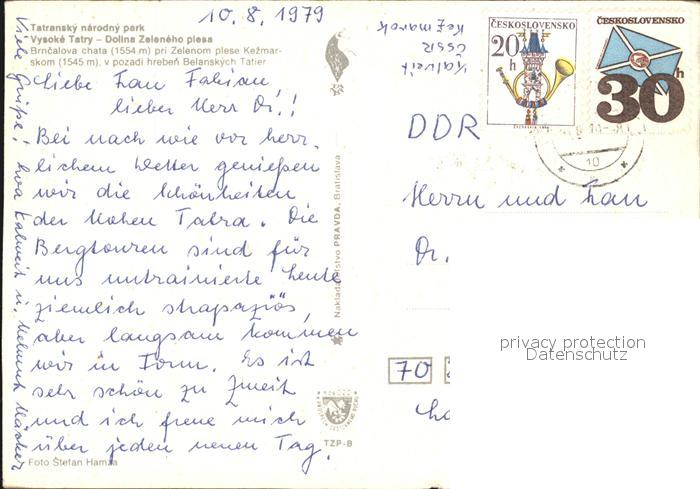 old postcard Vysoke Tatry Dolina Zeleneho plesa Brncalovou chata Berghaus Hohe Tatra See postalisch gelaufen Erhaltung siehe scans