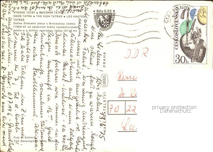old postcard Vysoke Tatry Dolina Zeleneho plesa Brncalovou chata Berghaus Hohe Tatra postalisch gelaufen Erhaltung siehe scans