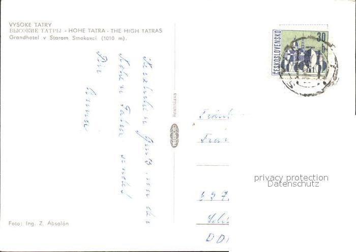 old postcard Vysoke Tatry Grandhotel Starom Smokovci postalisch gelaufen Erhaltung siehe scans