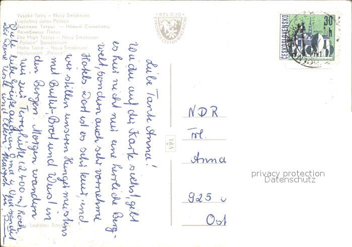 old postcard Vysoke Tatry Heilanstalt Palace postalisch gelaufen Erhaltung siehe scans [AndreD76 kv022box]