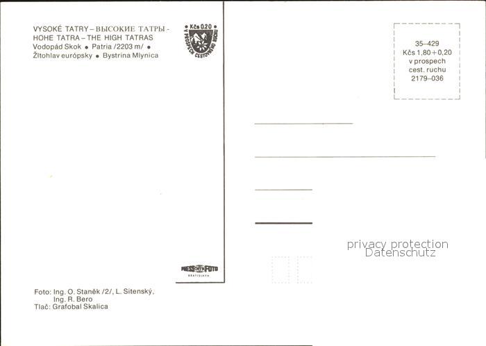 Vysoke Tatry Hohe Tatra Vodopad Skok Patria Bystrina Mlynica postalisch nicht gelaufen Erhaltung siehe scans