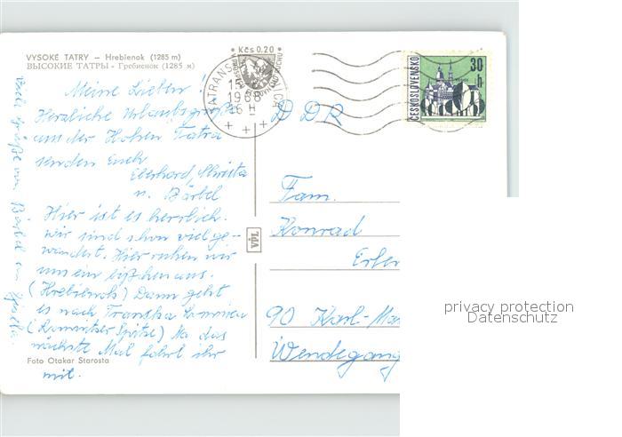 old postcard Vysoke Tatry Hrebienok postalisch gelaufen Erhaltung siehe scans