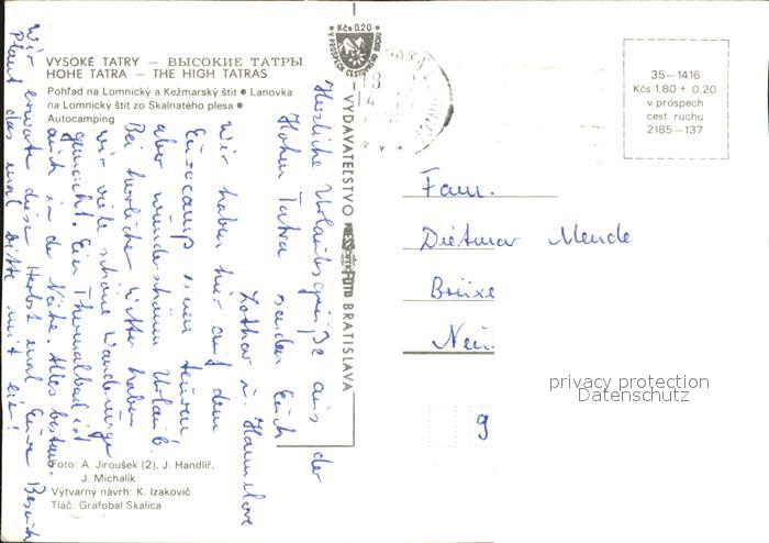 Vysoke Tatry Lomnicky a Kezmarsky stit Lanovka Skalnateho plesa Autocamping postalisch nicht gelaufen Erhaltung siehe scans