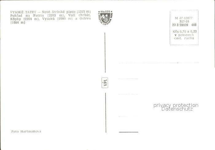 Vysoke Tatry Nove Strbske pleso Pohlad na Patriu Voli chrbat Kopky Vysoku Ostrvu postalisch nicht gelaufen Erhaltung siehe scans