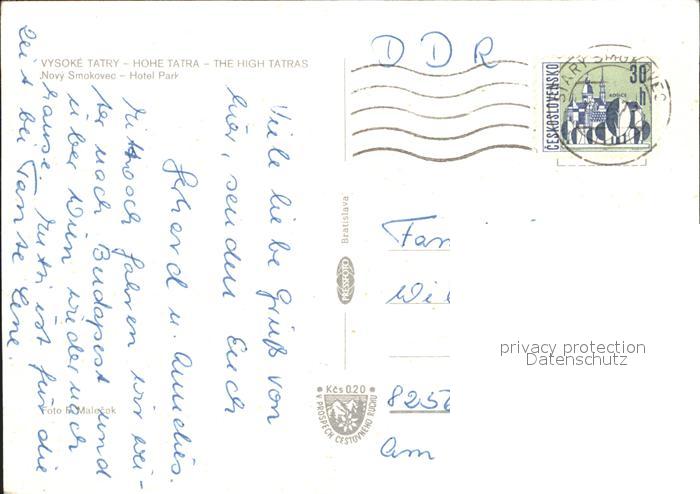old postcard Vysoke Tatry Novy Smokovec Hotel Park Hohe Tatra postalisch gelaufen Erhaltung siehe scans