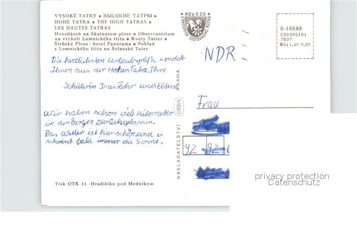 Vysoke Tatry Observatorium Kvety Tatier Hotel Panorama Belanske Tatry postalisch nicht gelaufen Erhaltung siehe scans [WerneD78 kt108box]